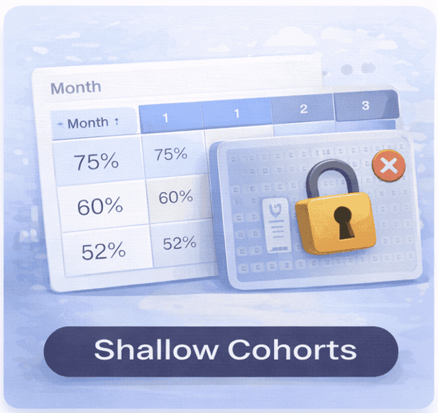 Cohort analysis is shallow and gated